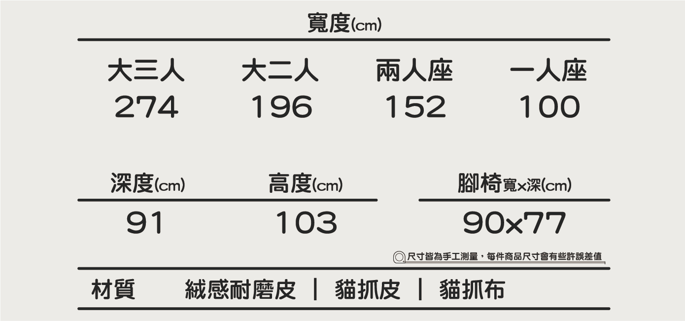 | 價格表 | 絨感耐磨皮 |