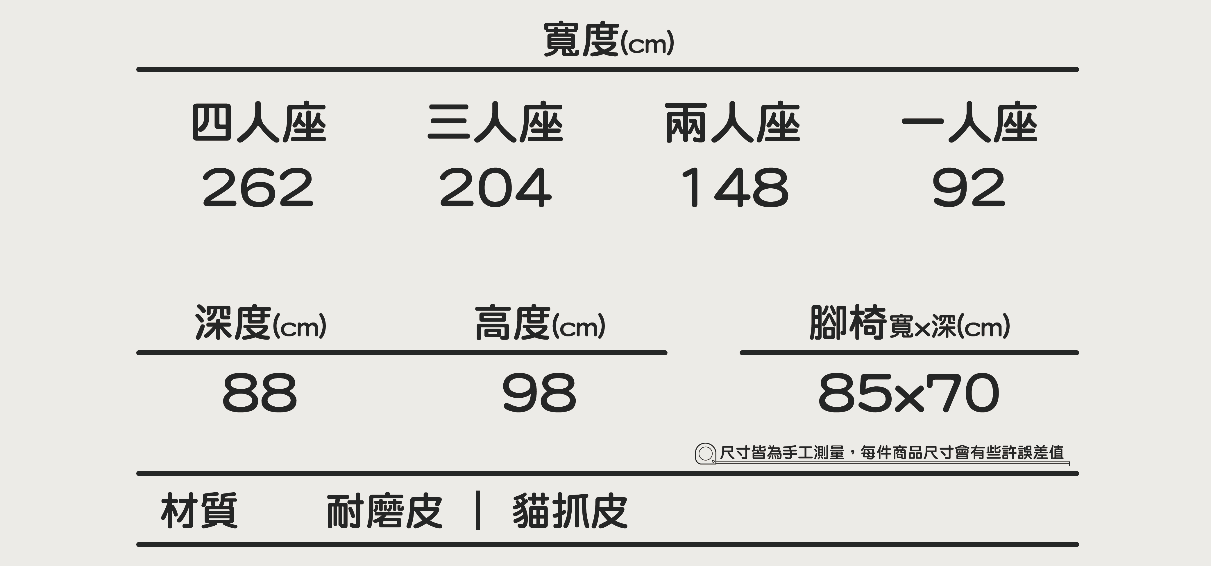 | 價格表 | 耐磨皮 | 升級 貓抓皮 |