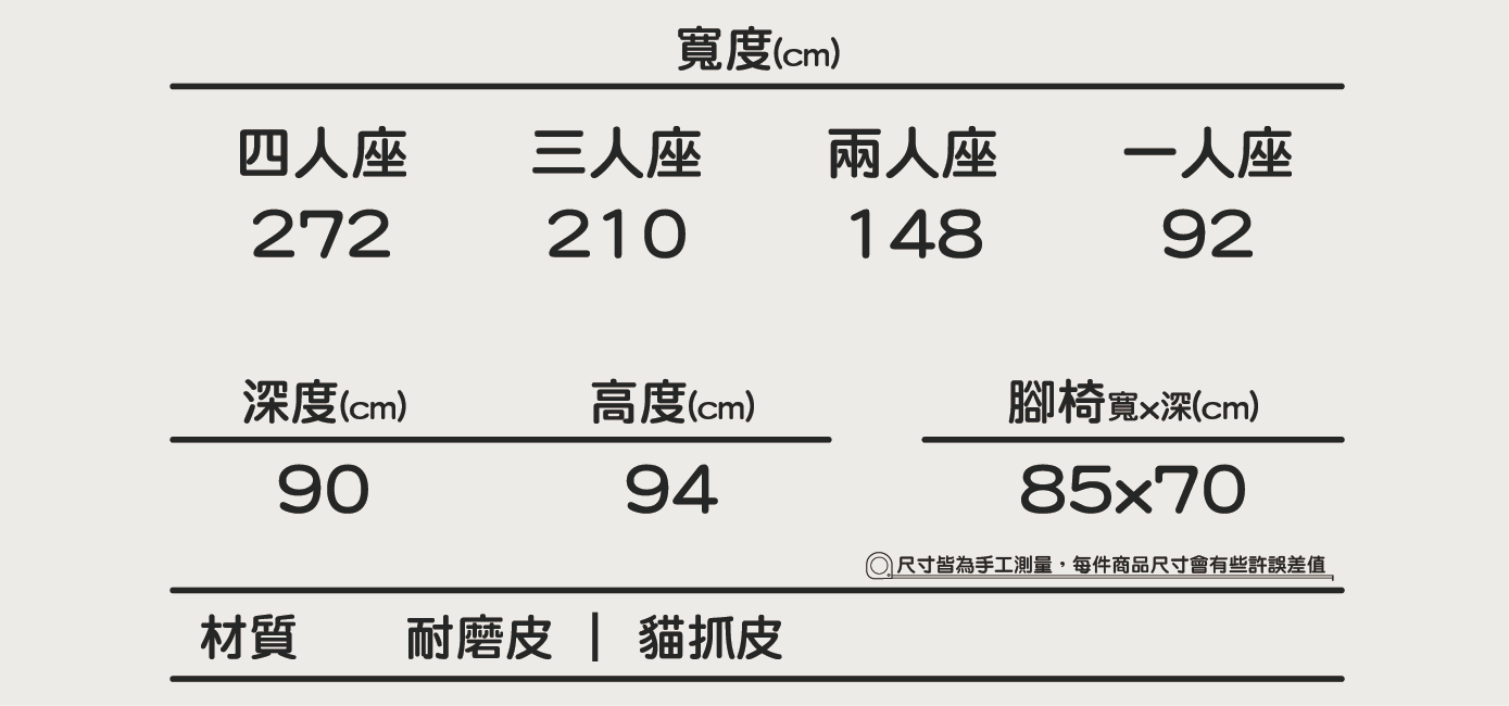 | 價格表 | 耐磨皮 | 升級 貓抓皮 |